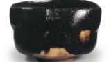 该盘从高高的底座处被精心削削,呈扁平直线形展开,盘面两侧自由地绘有抽象化的花纹。在柳原窑出土的陶片中发现有类似花纹的器物。