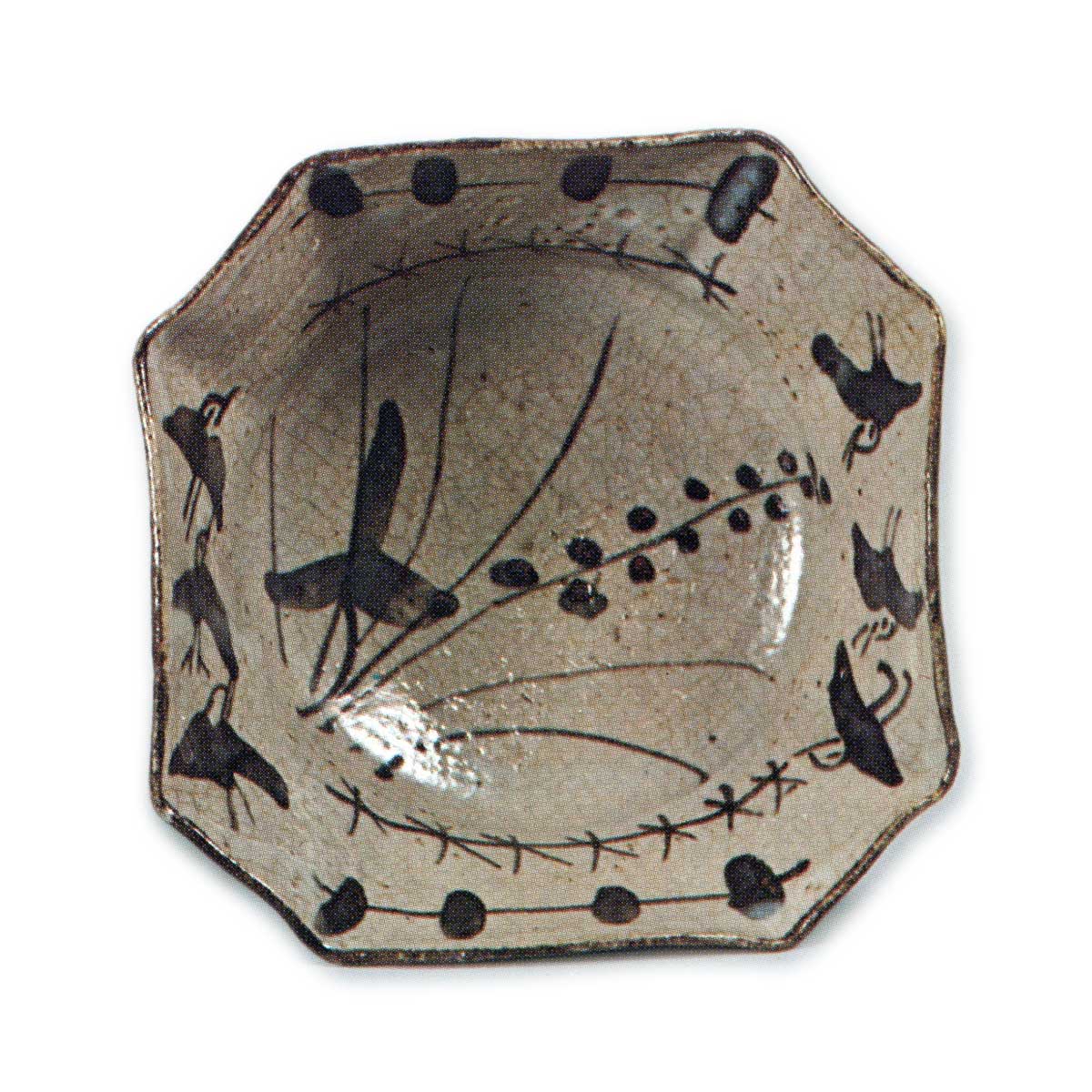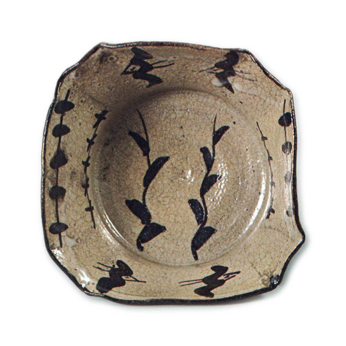 绘唐津水草纹四方向付 唐津绘唐津水草纹四方向付 X Facebook Hatena Bookmark LINE Pinterest 复制 2025.08.05 绘唐津水草纹四方向付 绘唐津水草纹四方向付 11.4厘米每个高度6.5厘米,口径11.4厘米,底径4.6厘米均为四方角切的小深向付,与图195一同作为六客一套流传下来。这是多久高丽谷窑特有的细腻笔触的绘唐津。