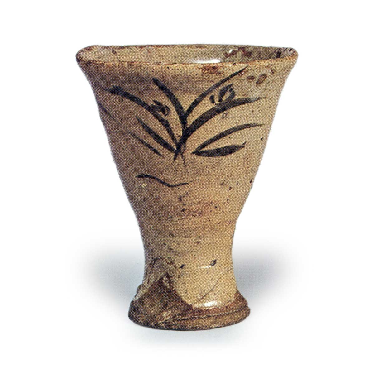 绘唐津草花纹猪口 唐津绘唐津草花纹猪口 X Facebook Hatena Bookmark LINE Pinterest 复制 2025.08.05 绘唐津草花纹猪口 高度7.9厘米 口径6.4厘米 底径3.6厘米出光美术馆马蹄形猪口,此类器形较为罕见。 一侧绘有类似兰花的草花纹,另一侧绘有飞鸟纹。 底部平坦,留有线切痕迹。