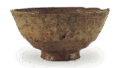 Kugibori Iroha的主要特征是边缘不像其他作品那样向上翻起,而是呈斜面。足很大,但不像竹节那样打结,内部是平的,没有头盔状的盖子,有折叠的脊,看起来像是用粗钉雕刻的,部分是切脚。 此外,釉面通常粗糙不平,这也是这类器皿的特征。这种粘土与古伊拉保式土相似,但似乎含有更多的铁,虽然与沙子混合,但石斑更多。拉出痕迹的细线在内外都清晰可见。