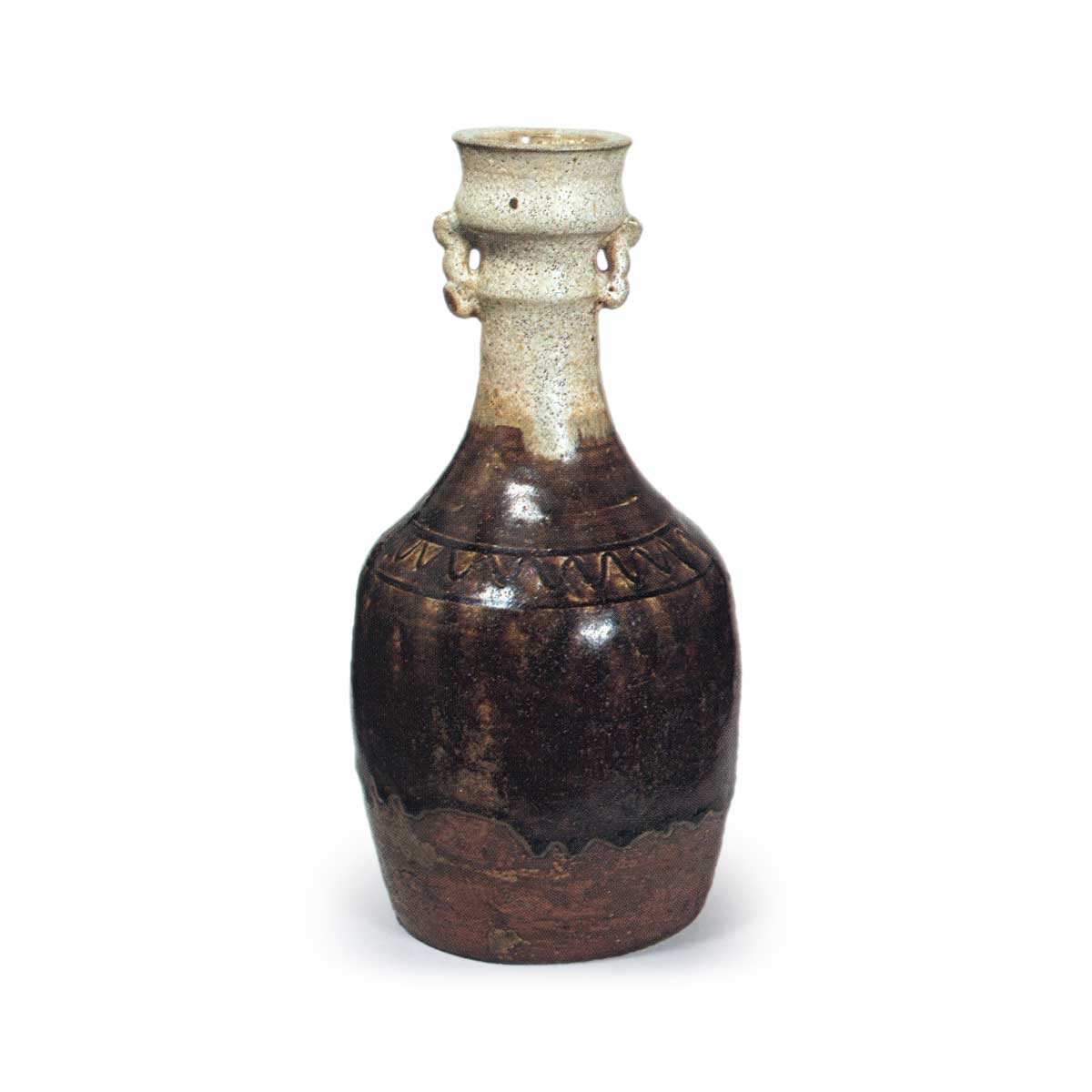 朝鲜唐津耳付花瓶 唐津朝鲜唐津耳付花瓶 2025.08.06 朝鲜唐津耳付花瓶 朝鲜唐津耳付花瓶 均为朝鲜唐津花瓶的佳作,此类器物多见异形设计。 据推测是以纯粹茶陶为烧制目的,受织部风格影响显著。其中图254以五角形面切处理瓶身,制作工艺尤为精湛。 釉面均烧制得光泽亮丽。可能出自高取内ヶ磯窑。