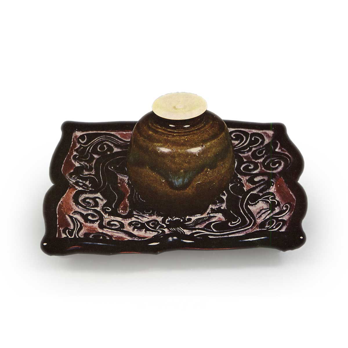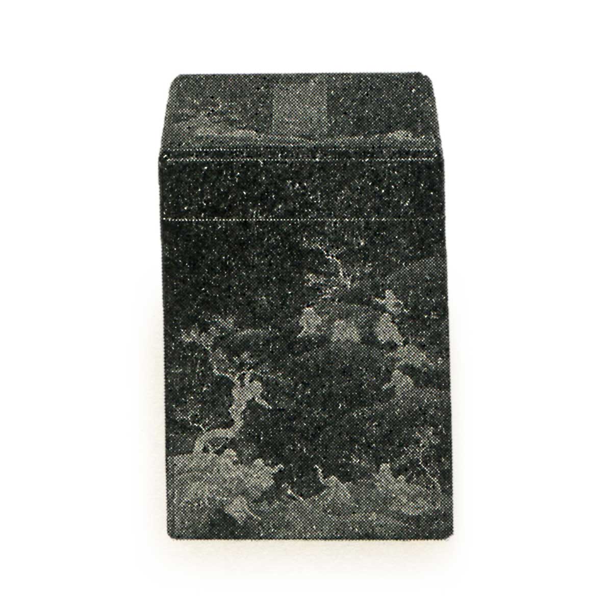 盖四 木口盖 半清作 利休好 木口打入立古作 青山公好 身窠印斎作 远州好 盖无色付打入印斎作 远州好 仕覆五 挽家一 铁刀木 金粉字形 书付 小堀权十郎笔 菱形黑盆 内箱 桐白木书付 小堀权十郎笔 外箱 黑漆 千匹猿金蒔絵 内部金梨子地 盖蒔絵 中央短册形 政宗好