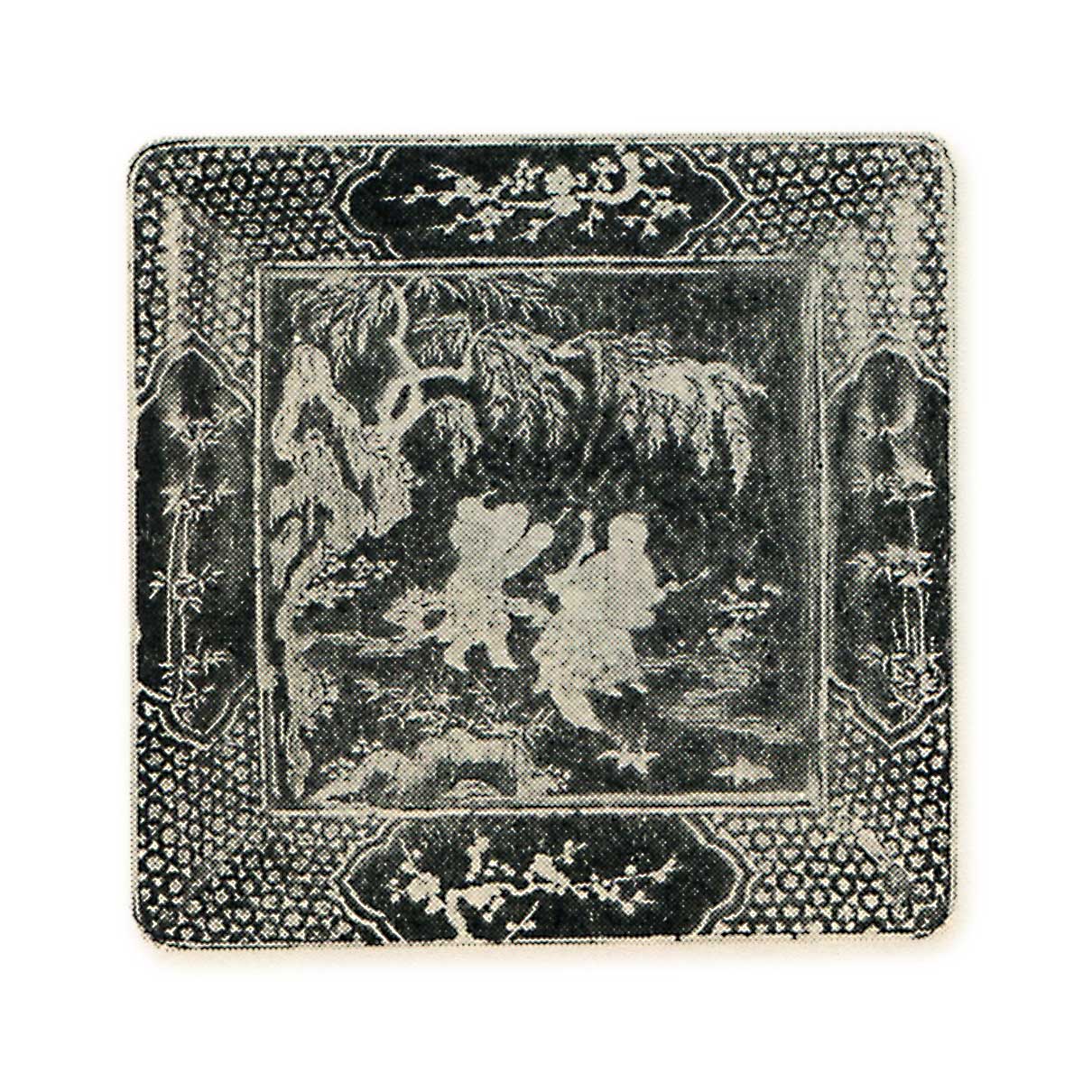青贝四方盆 镜 柳池唐子三人 表 缘梅竹纹样 里缘 唐草