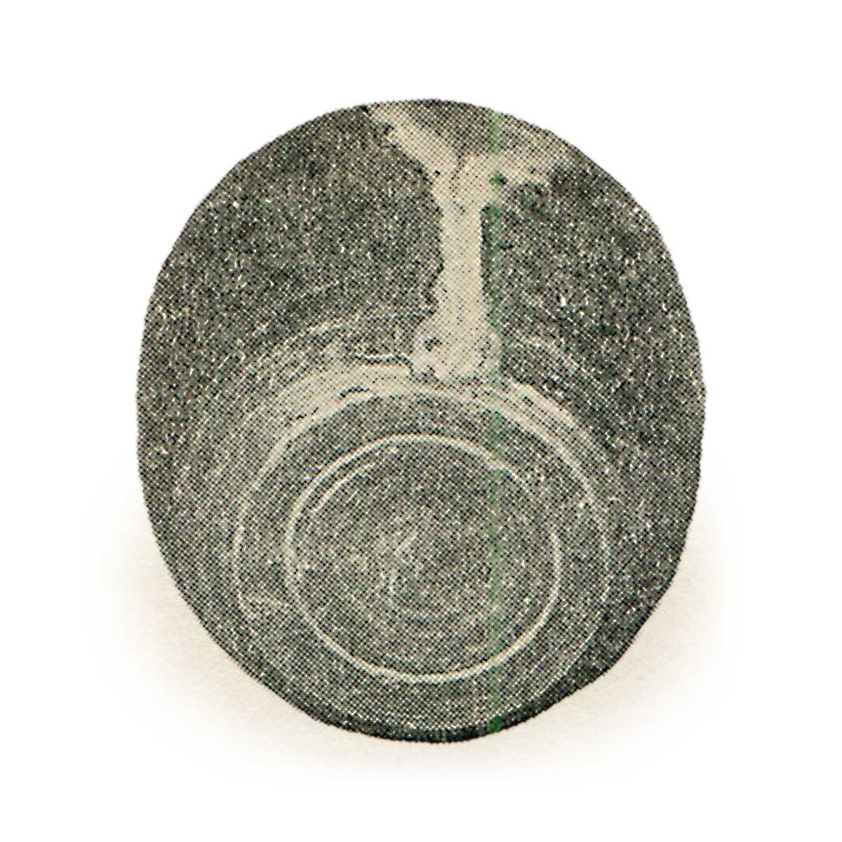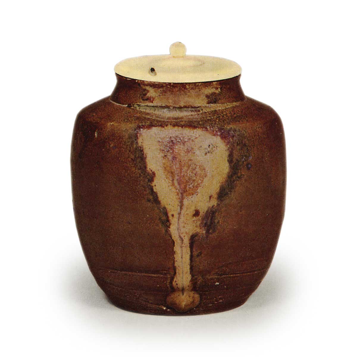 肩冲形制端正,浊色釉料覆盖全器,自黄釉釉脚处强劲流淌至肩部,露形优美地停驻于底缘,使整体釉色协调统一。底土透出微白质感,轮廓线条间勾勒出一道粗犷纹路。整体造型浑然天成,堪称典雅茶入。