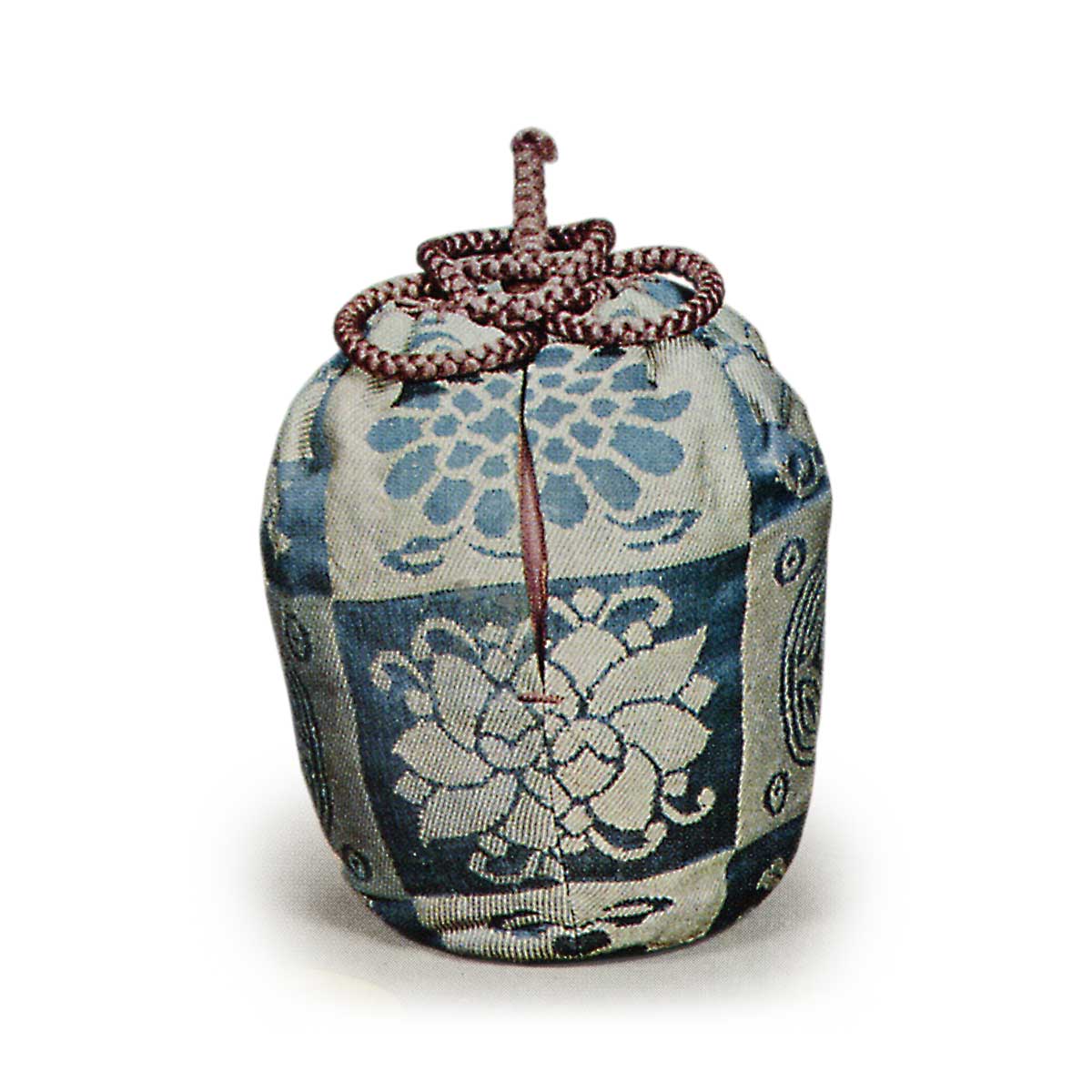 其茶罩尽显远州雅趣,尤以钓石垛金襴纹样为珍。此茶入曾流传于江户名流贵族与茶道行家之间,轶事颇多。