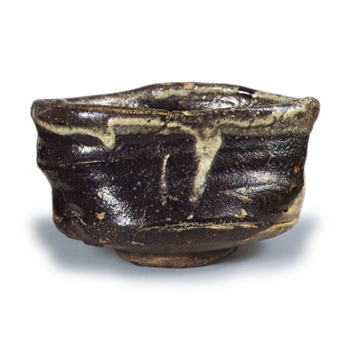 此茶入铭“桥立”,乃破风窑中罕见之作,造型奇特,器身下部呈膨胀状,堪称肩冲之作。