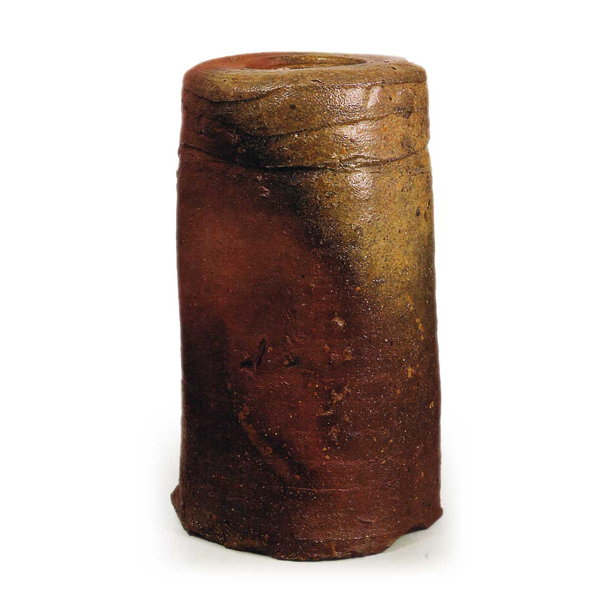 备前旅枕花器 备前备前旅枕花器 X Facebook Hatena Bookmark LINE Pinterest 复制 2025.09.06 备前旅枕花器 高18.4厘米 口径9.2厘米 底径9.5×10.2厘米此乃所谓旅枕形花器。口部呈姥口风格,口底皆圆润,器身四面压制成抚四方形。肩部下方饰有三道长短不一的横向刮刨纹,这种刻意处理有效收束了单调的筒形轮廓,配合芝麻釉流淌形成的优美釉色,使作品更显非凡。备前烧的旅枕造型实属罕见。背面设有挂耳,正面开孔的挂耳孔现已填塞。