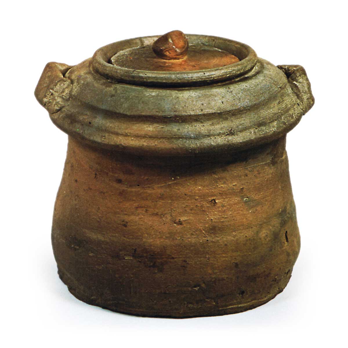 备前带耳水指 备前备前带耳水指 2025.09.072025.11.14 备前带耳水指 高19.8厘米 口径13.8厘米 底径20.2厘米此为体型硕大、浑厚稳重的水指,上部形似取水釜。口沿呈微外翻的玉缘造型,肩部设有阶梯状台阶,两侧配有大型耳柄。器身自下而上舒展地向外扩散,底部应为平底。胎土质地柔软而烧制致密。纵观众多作品,此类柔润烧制的胎土多见于古作。推测应为室町时代末期至天正年间(1573-1592)的器物。与绍鸥所藏水指相比,此作更显桃山风格的刻意雕琢,但就这类风格而言,应属早期作品。