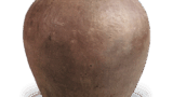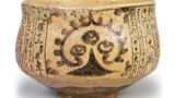 备前矢筈口水指 备前备前矢筈口水指 2025.09.082025.11.14 备前矢筈口水指 高16.3厘米 口径10.9~16.2厘米 底径16.8厘米此亦为带盖水指,其变化丰富的烧成肌理尤为精美。器身底部留有筅痕,口沿下方亦见筅纹。自口部延伸至器身一侧呈灰釉,其余部分则为赤褐焦肌。陶土肌理经烧制呈现略带粗粝的质感。内壁以粗犷的笤帚纹雕刻着醒目的“六”字铭文,配套盖的盖面则压印着窑印。上述水指虽作风相近,然其中既有略带古雅格调之作,亦有变化丰富的款式。此差异不仅源于制作者不同,更映现出时间流转的痕迹。