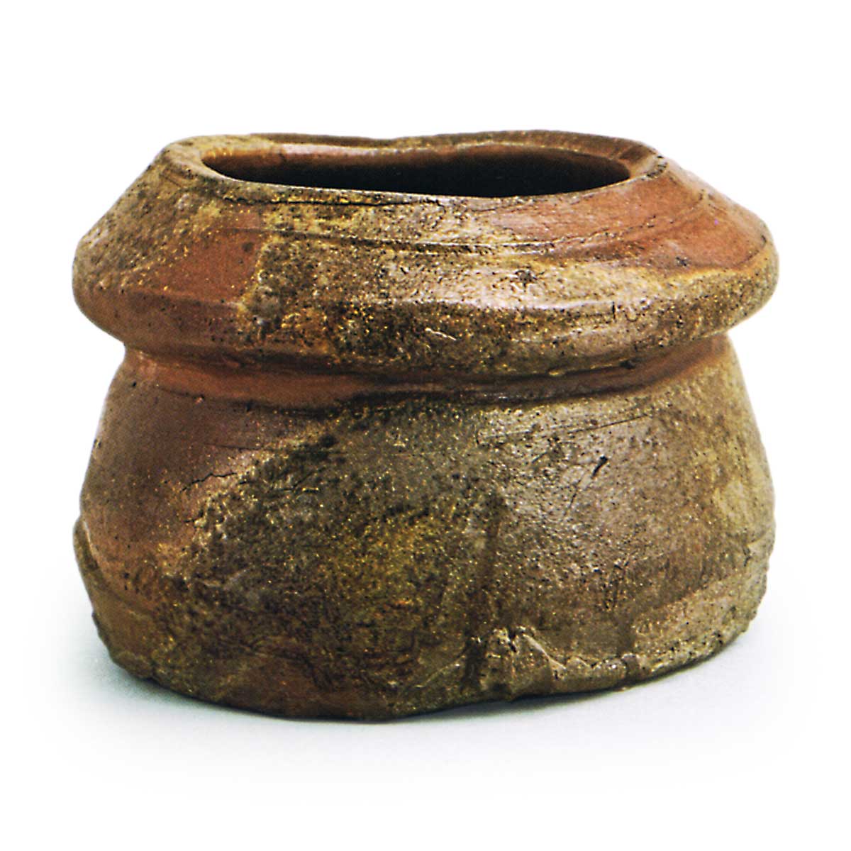 备前水指 备前备前水指 2025.09.082025.11.14 备前水指 高10.2厘米 口径13.0厘米 胴径18.9厘米 底径17.7厘米此水指胴体收束有力,形似厚实糕饼,瓶身低矮挺拔。胴体饰以纵向刨痕纹,裙边点缀横向刨痕纹。自口沿至肩部厚重灰釉沉积形成焦痕,局部红釉剥落更添景致鲜明。因整体厚胎制作,虽属小品却手感沉稳。底足轻刻窑印,内壁见角形香纹样印章。此乃异形水指之代表作,然此类器物或有作为杂器诞生的可能。