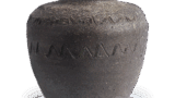 备前耳付水指 备前备前耳付水指 2025.09.092025.11.14 备前耳付水指 高16.0厘米 口径12.2厘米 底径18.9厘米 梅沢配念馆此作亦属伊部手水指中颇具古风的力作,两侧饰有硕大耳柄。自口部延伸至器身一侧厚施胡麻釉,其余面则烧成光泽缎面的黑褐色胎体。器身两侧以笤帚纹饰刻出草叶纹样,底面则刻有硕大的窑印。