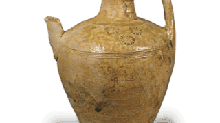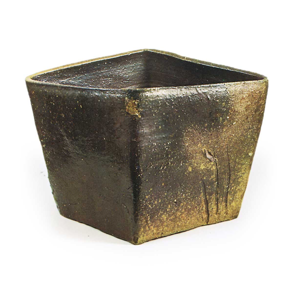 备前乌帽子形水指 备前备前乌帽子形水指 X Facebook Hatena Bookmark LINE Pinterest 复制 2025.09.092025.11.14 备前乌帽子形水指 高16.6厘米 口径17.9×25.2厘米此亦属乌帽子形水指。薄胎轆轤拉坯,口部呈锐利菱形,底足近似方形菱形。外侧两面各饰三道刮纹,其中一面与内壁覆有薄灰釉,其余面亦溅落淡灰釉形成釉色景致。内壁见两处圆形釉洞,底足内侧刻有细小文字,然字迹已模糊难辨。应属伊部手水指之作。