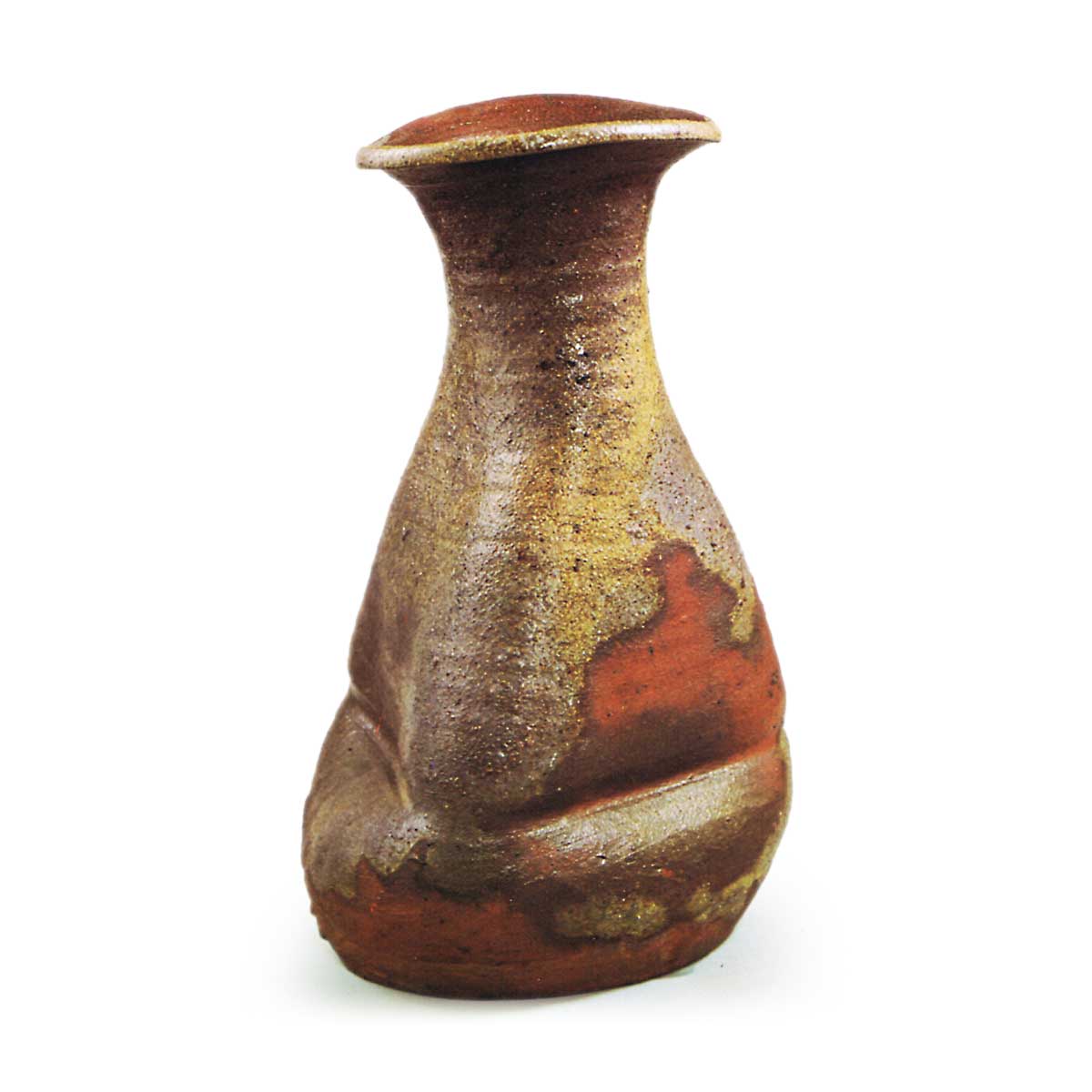 备前花生 铭 鬼之腕 备前备前花生 铭 鬼之腕 2025.09.09 备前花生 铭 鬼之腕 高28.4厘米此瓶曾为古田织部所藏,题有“鬼之腕”铭文。其粗犷的造型,确如鬼臂般雄浑有力。整体作风虽显粗放,窑变釉色却极为鲜明:自瓶口至瓶身下缘,灰釉如瀑倾泻,陶胎质地柔润。据推测应属桃山时代前期作品。