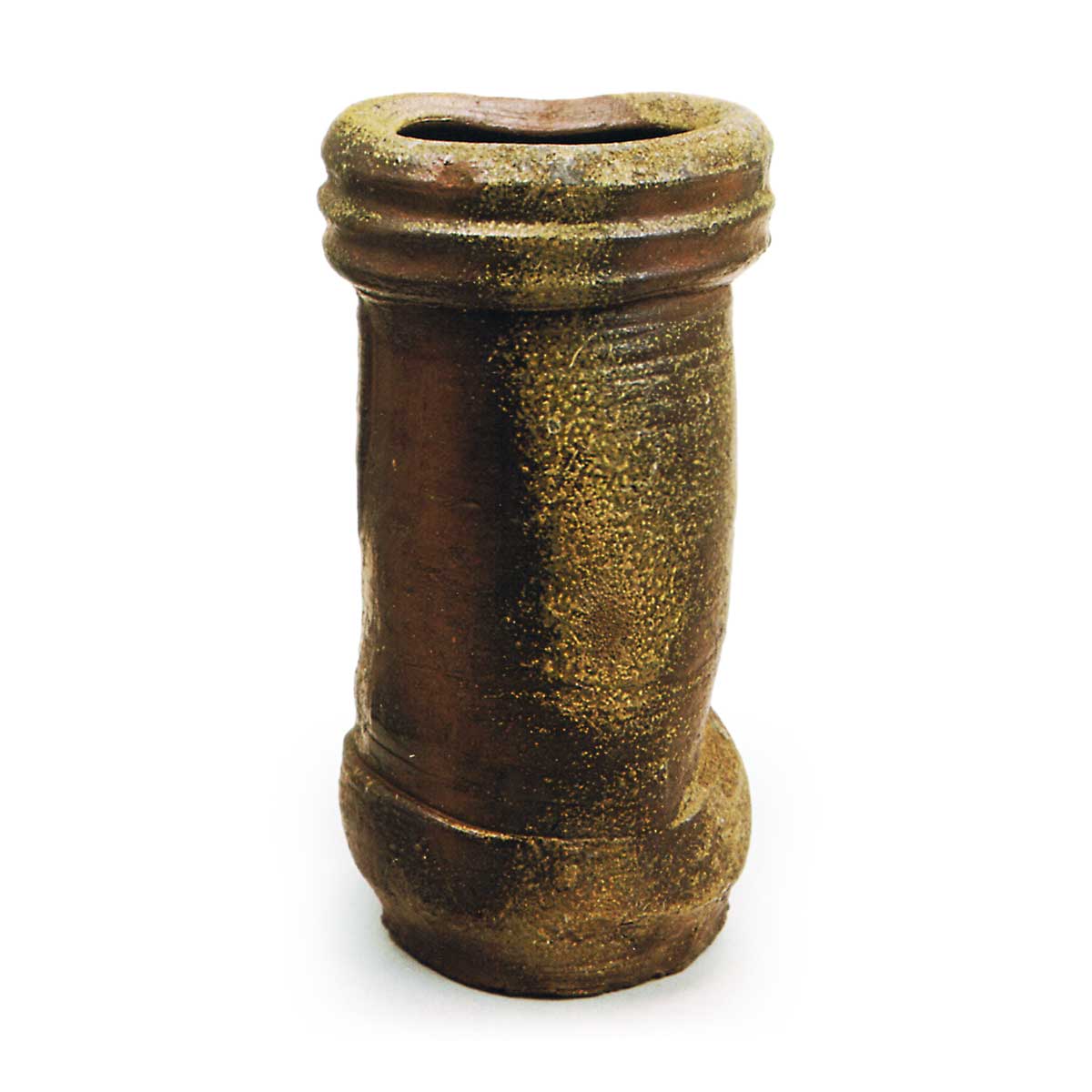 备前花生 备前备前花生 2025.09.09 备前花生 高27.5厘米 口径14.1厘米 胴径14.5厘米 底径11.0×12.3厘米此器以姥口风格的宽阔口部为特色,胴部收束紧致,器底又呈外翻膨胀之姿,造型独特。自口部延伸至胴体一侧,芝麻釉色鲜明垂落,釉裂处呈现焦黑,其余部分则烧成赤红色,堪称釉色鲜明的佳作。胴体纵向刻有两道平直的刮痕,整体略带歪斜的烧成效果更添雅致韵味。内壁刻有窑印,底足处亦雕有窑印。口部正反两面可见填补挂耳孔的痕迹。