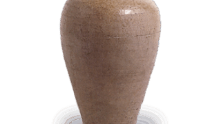 备前耳付花生 备前备前耳付花生 2025.09.09 备前耳付花生 高28.4厘米 口径7.9厘米 底径13.5厘米器形独特:口部呈三角形,颈部收束,胴体自肩部向下逐渐舒展,两侧颈部饰有垂耳。此作法可见于水指等器物,应属备前特有的制作手法。胴部以筏雕技法施饰纹样,亦与伊部手水指的作法相似。自肩部至裾部覆有胡麻釉,口部至颈部则显露赤色烧结的素土肌理。颈部正反两面开有挂耳孔,孔下方横刻窑印。