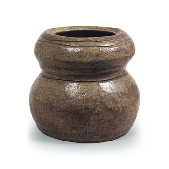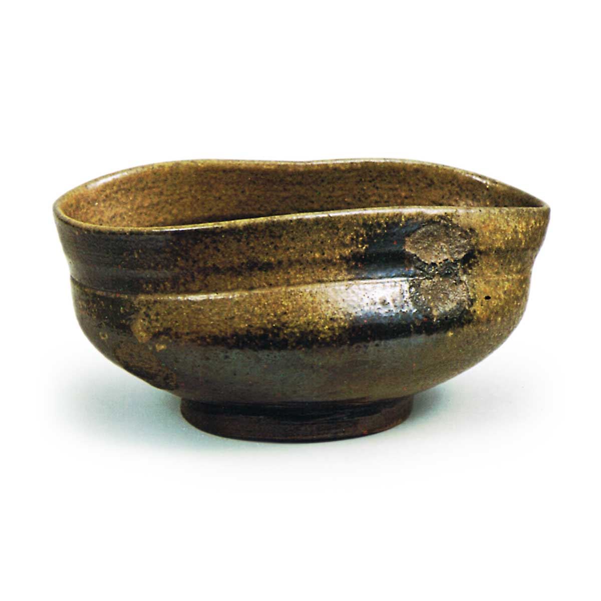 备前沓茶碗 备前备前沓茶碗 2025.09.09 备前沓茶碗 高5.3厘米 口径7.6×12.5厘米 底径6.2厘米略薄的轆轤拉坯成型,口部呈沓形,收束的器身。腰部圆润,高台自然削出。内外壁覆有胡麻釉,涂土肌理光滑,烧成暗褐色。碗身三处有粘结痕迹,高台内侧刻有窑印。此类鞋形茶碗中虽属小巧之作,却堪称工艺精湛的佳品。
