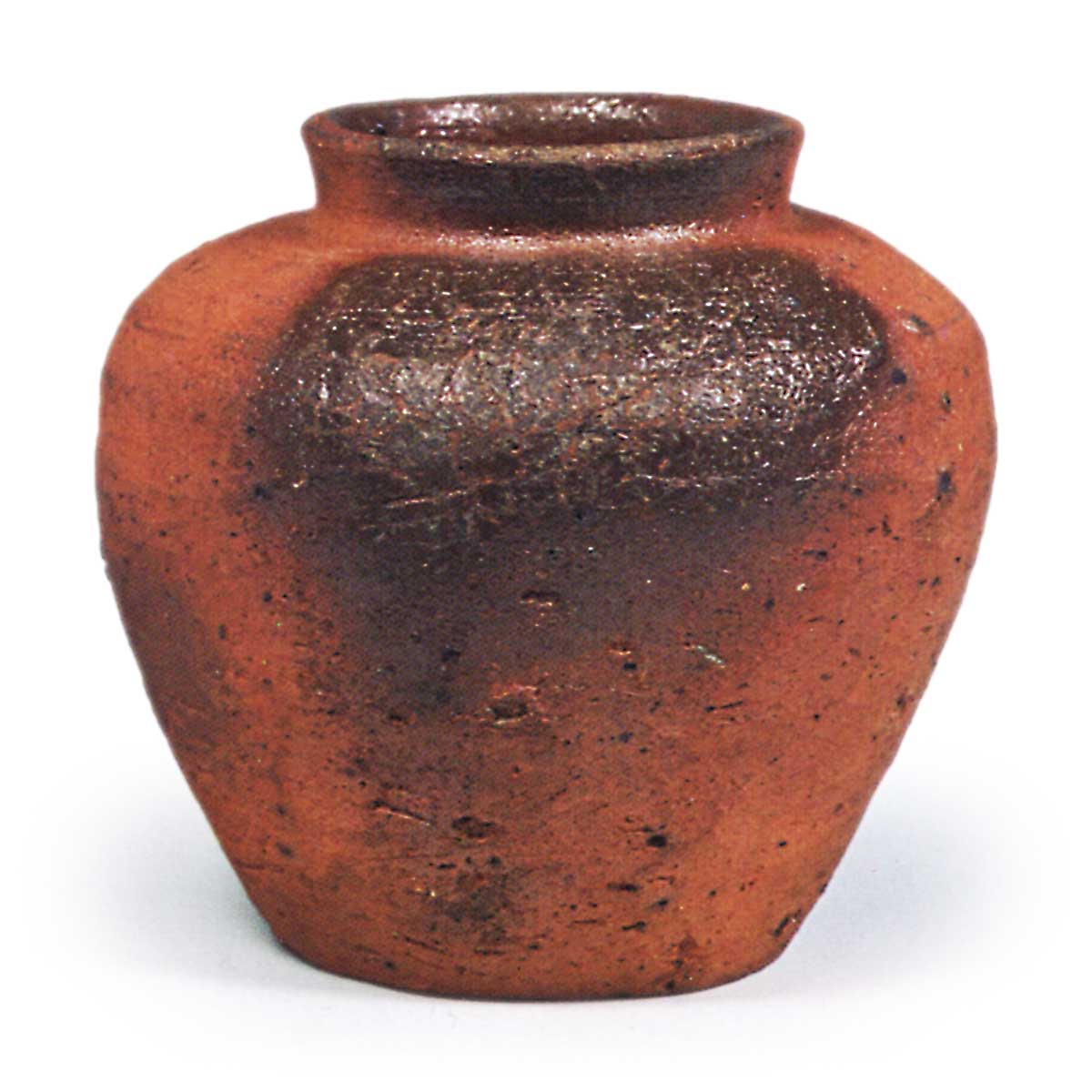 备前茶入 备前备前茶入 2025.09.092025.11.14 备前茶入 高6.5厘米 口径3.8厘米 胴径6.9厘米 底径4.9厘米此乃壶形质朴的茶入。通体烧得通红紧实,肩部局部出现黑色焦痕,形成独特景致。平底处浅刻窑印。或许是室町时代后期的作品。