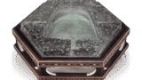 备前绯襷四耳茶壶 备前备前绯襷四耳茶壶 2025.09.09 备前绯襷四耳茶壶 高30.6厘米 口径12.1厘米 胴径27.8厘米 底径13.7厘米虽为茶壶,肩部呈抚肩造型,器形端庄。自壶口至壶身中部伞面泛现赤色,裙边处浮现绯纹,实属罕见的鲜艳绯襷壶。在流传至今的绯襷壶中,此二作堪称最杰出之作。平底近中央处以刮刀刻出窑印。