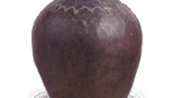 备前四耳壶 备前备前四耳壶 2025.09.09 备前四耳壶 高25.9厘米 口径15.5厘米 胴径22.7厘米 底径11.6厘米此壶非茶壶。口部宽阔,壶身线条柔和,呈现质朴形态。肩部四面附有耳柄,窑变釉色鲜明,肩部略带胡麻釉斑。底面以筏雕刻有“イ”窑印。