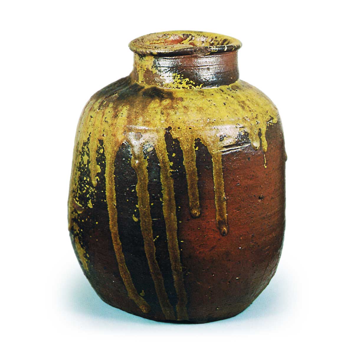 胴长的造型实属罕见。从口沿至肩部、胴身,釉色如流水般倾泻而下,胎体呈现赤红底色,经窑变后泛出黑色光泽,显得格外鲜明。底足处以笤帚痕刻有窑印。