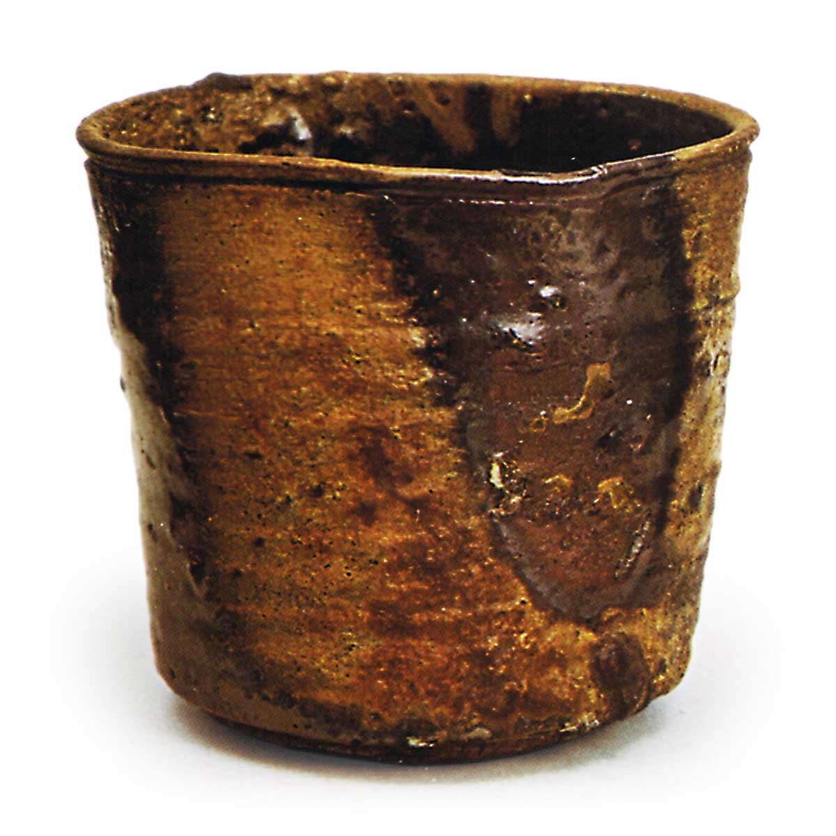 备前火入 备前备前火入 2025.09.09 备前火入 高8.5厘米 口径7.9×9.8厘米 底径6.1厘米虽可作筒形茶碗使用,但如今多作为火炉使用。伊部烧技法使整体造型纤薄,口部略显歪斜,宽大的高台低矮削制而成。从口部至器身厚涂芝麻釉,堪称窑变景致鲜明的佳作。