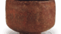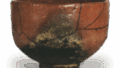 原因尚不清楚。大黑茶碗的厚度也相当大,但这个茶碗却是个例外,似乎是在底部内侧刮削一次后,又往里面添加了粘土。 这种粘土是一种名为“聚乐土”的细砂粘土,呈深红色。