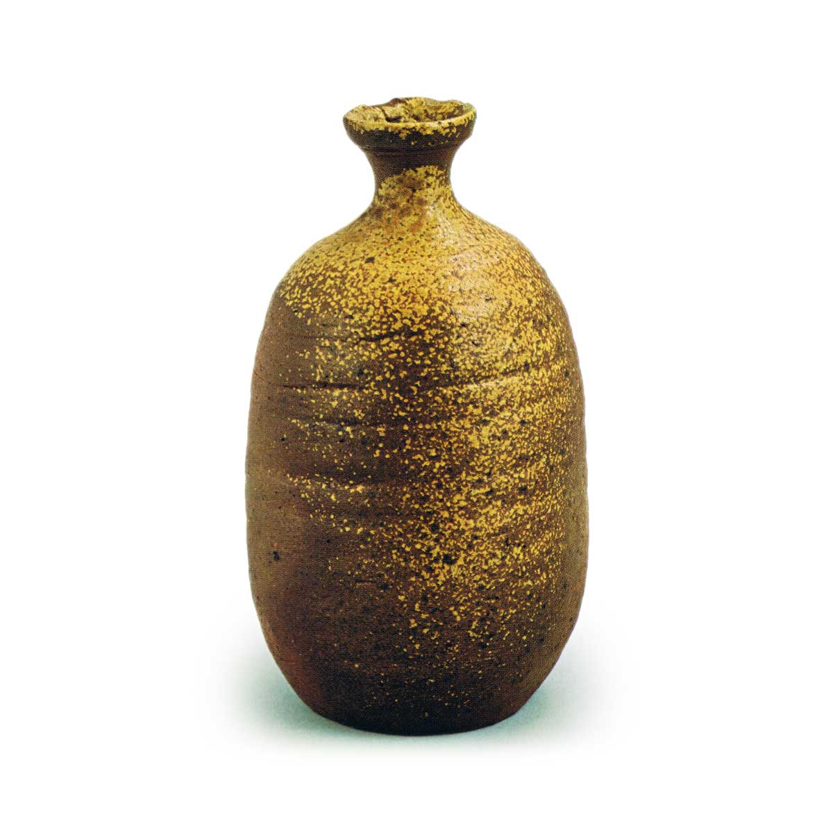 备前德利 备前备前德利 2025.09.10 备前德利 高18.0厘米 口径3.7厘米 胴径11.3厘米 底径6.8厘米呈矮胖形态,即所谓芋头德利式样。自口部至裙边鲜明地垂落着芝麻釉,其余部分则烧制成褐色或带红的紧致质地。背面以砧凿技法刻有窑印。