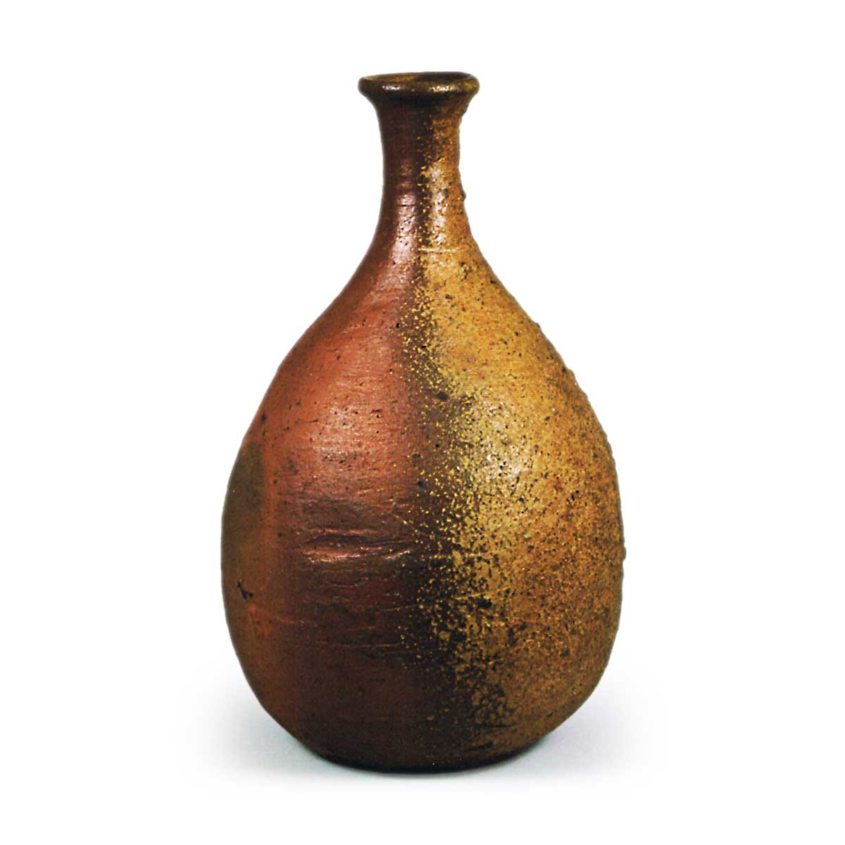 备前德利 备前备前德利 2025.09.10 备前德利 高25.3厘米 口径4.4厘米 胴径15.5厘米 底径8.7厘米这应是体型硕大的辣韭德利,堪称此类器型中最杰出的典范。器形端庄,从胴部至底缘清晰流淌着胡麻釉,另一侧则呈现赤色烧结效果。底面以线刻工艺刻有“太”字窑印。
