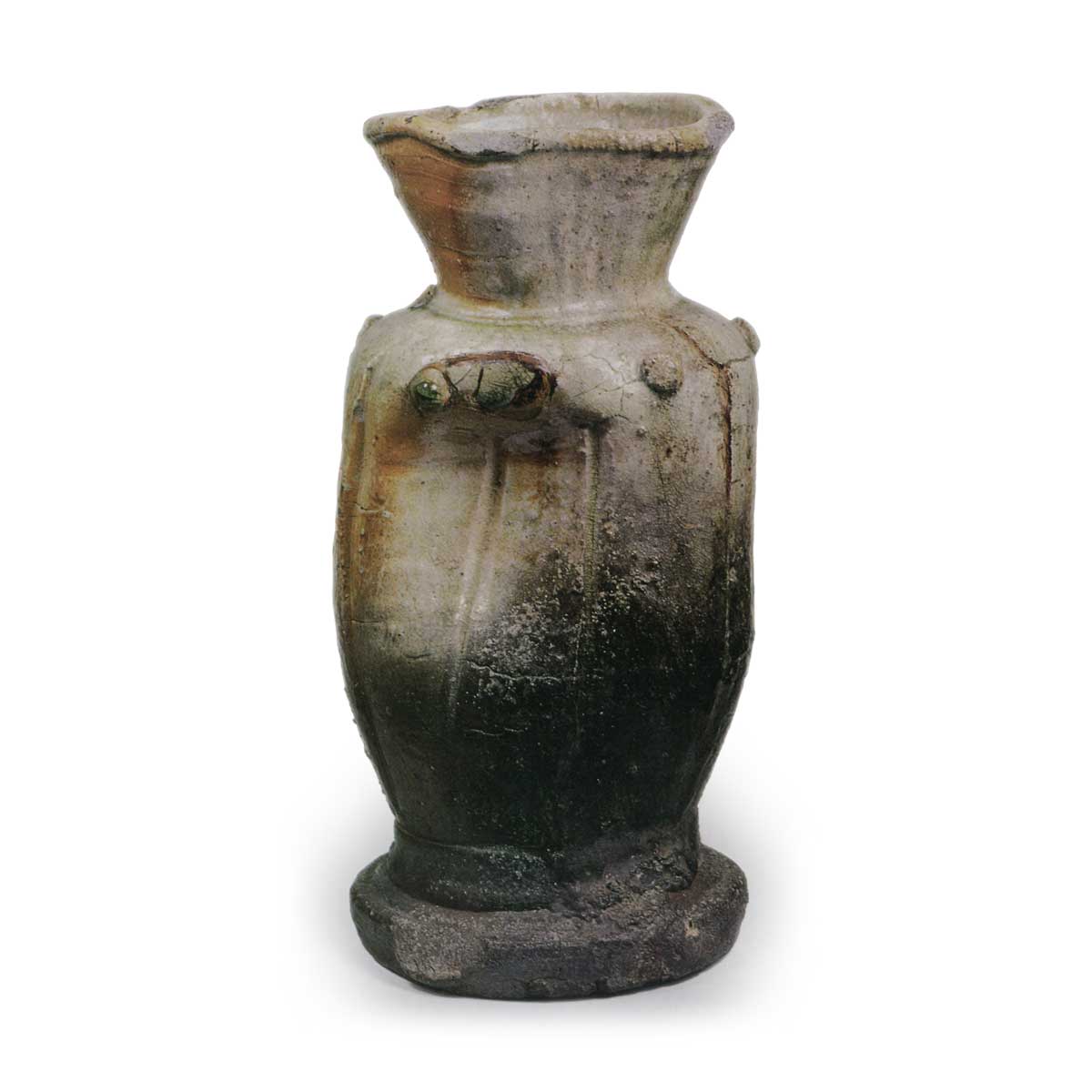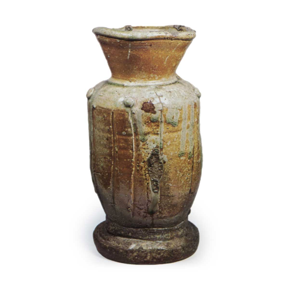 此伊贺花器以最厚实胎体成形,采用牵牛花造型:张开的口沿制成圆润玉缘,口部向四方舒展,器身呈圆形。