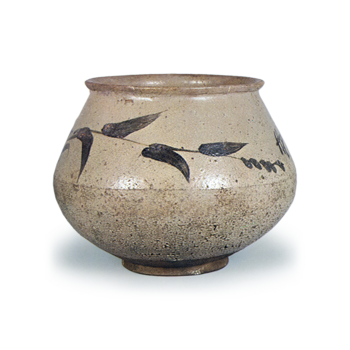 伊贺带耳葫芦形花瓶 伊贺伊贺带耳葫芦形花瓶 X Facebook Hatena Bookmark LINE Pinterest 复制 2025.09.11 伊贺带耳葫芦形花瓶 高27.7厘米 口径7.4厘米 底径12.3厘米此为葫芦形花瓶,瓶肩饰有垂耳。葫芦形花瓶较为罕见,迄今仅见过四件。颈部环绕着清晰的桧垣纹,葫芦形瓶身上下部饰有纵向筘痕。背面玻璃釉呈现焦皮质感,正面则流淌着鲜艳的玻璃釉彩,堪称伊贺烧花器中火里釉色景致最为精美的典范之一。