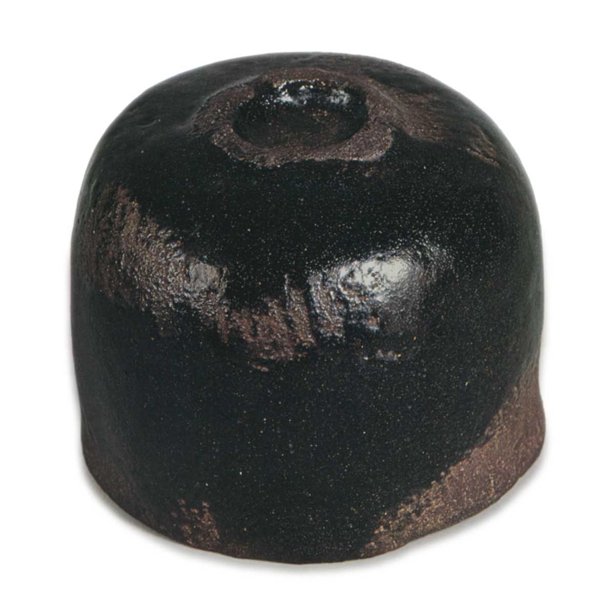 除了内外边缘以及壶身、壶腰和壶底等部位,黑乐烧釉料被厚厚地涂抹在茶碗上,釉料很好地熔化形成了深黑色,这可能是由于在高温下烧制所致。 这种釉料最显著的特征是边缘和底部略微倾斜的火痕,看起来就像雨云。