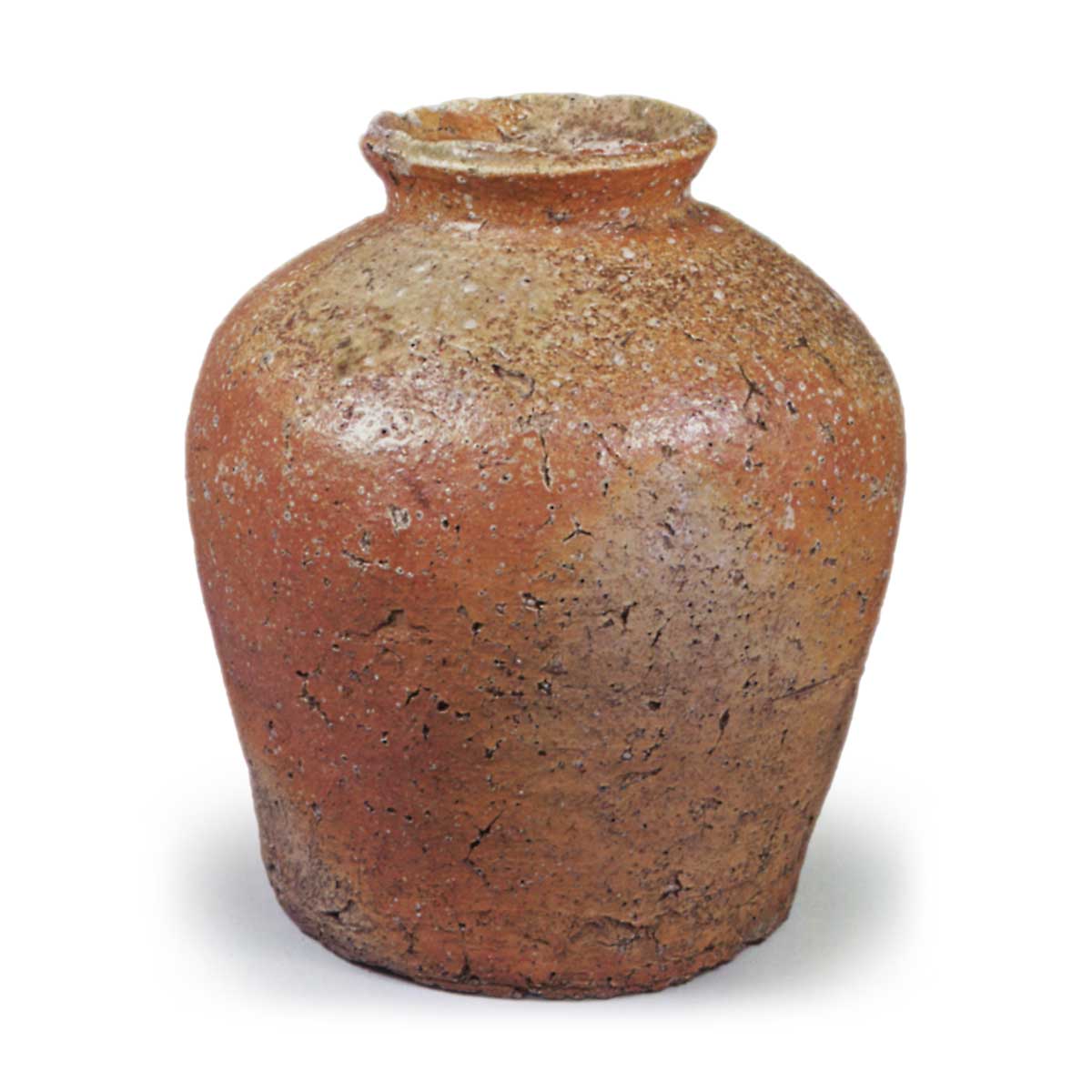 信乐壶 信乐信乐壶 2025.09.13 信乐壶 高20.1厘米 口径8.7厘米 胴径18.5厘米 底径13.9厘米此为室町时代中期至后期信乐小壶的典型之作。壶口微外展,口沿带阶梯状台阶,属抚肩式壶型。白色陶土经烧制后泛出淡红光泽,自口部至肩部局部附着薄灰。整体呈现室町时代信乐烧特有的温和质朴风格。