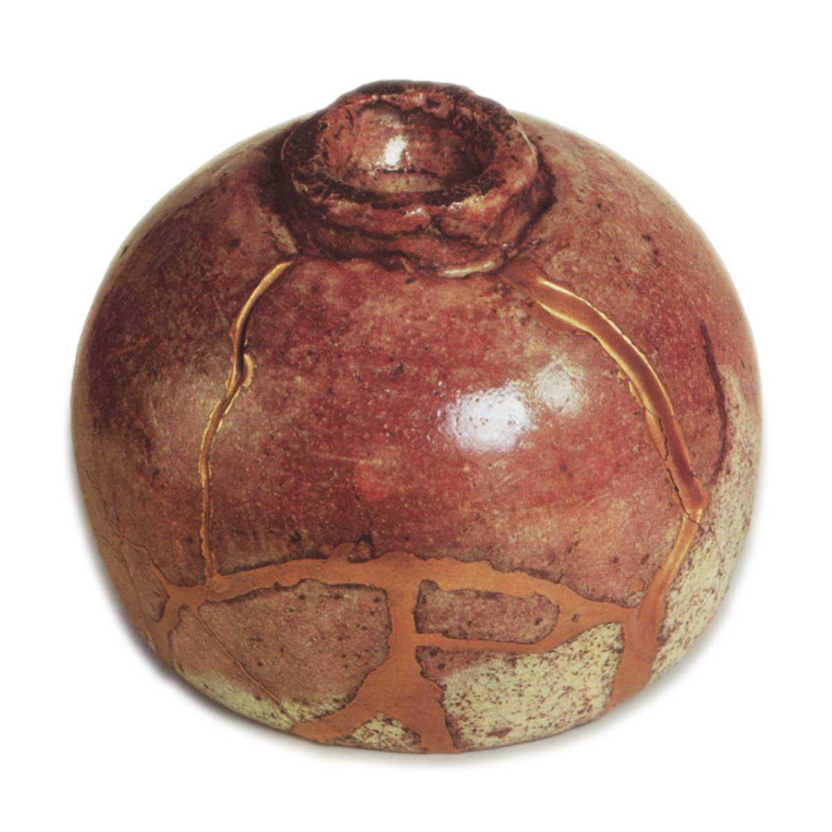 茶壶壁略厚,边缘由壶身固定,壶身逐渐变细,底部收窄。 在部分地方可以看到小悦钟爱的独特裂纹,这种裂纹在这只茶杯中尤为明显,而金色修补则进一步增强了这种效果。小悦似乎是在不关注温度的情况下用高温烧制了这只茶杯,裂纹被认为正是由此而来,并成为其特色与亮点。