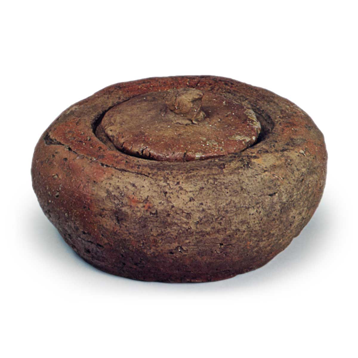 信乐平水指 信乐信乐平水指 2025.09.15 信乐平水指 高12.7厘米 口径13.7厘米 底径16.9厘米盖子采用半开式设计,整体呈矮胖的平水指造型,器身厚实。釉色几乎无斑点,一侧局部呈白色,其余部分为红色,盖子则呈现淡红色烧结效果。虽同样被认为是江户时代前期的作品,但作为此类平水指而言,其制作工艺堪称上乘之作。
