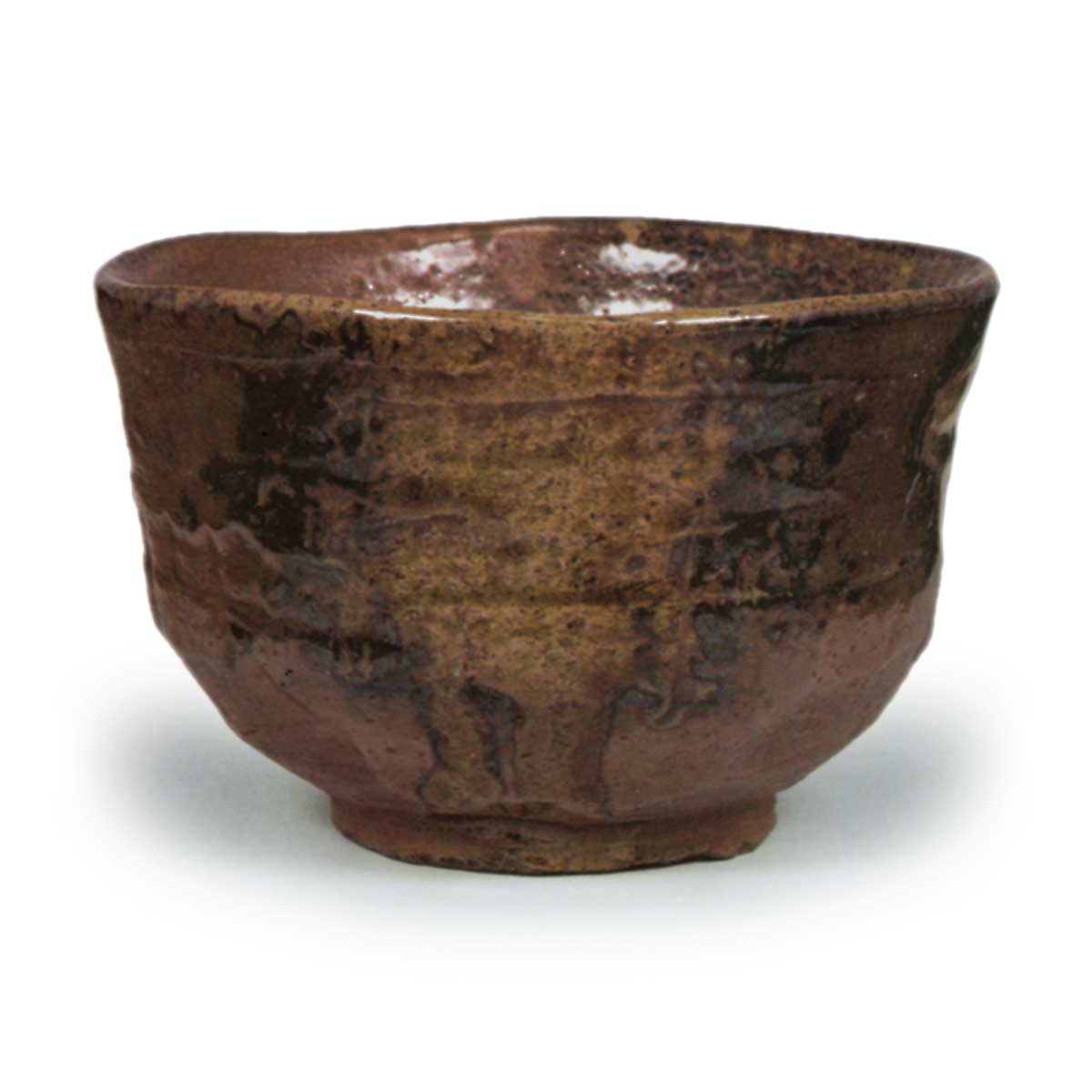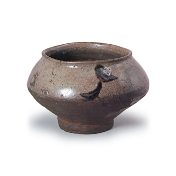 丹波茶碗 铭雪间草 丹波丹波茶碗 铭雪间草 X Facebook Hatena Bookmark LINE Pinterest 复制 2025.09.17 丹波茶碗 铭雪间草 高8.7厘米 口径13.1厘米 底径6.6厘米此为轆轤拉坯后施以刮痕的大型茶碗,碗口呈端反弧形;腰部饰有面切风格的刮痕纹样,配以宽阔的叠付高台。作为丹波烧茶碗,其造型气势磅礴。通体施以泥浆釉,覆以糖釉与灰釉,其风格或受伊贺烧影响。想必是因釉色景致得名“雪间草”。碗内侧饰有镜面纹饰。