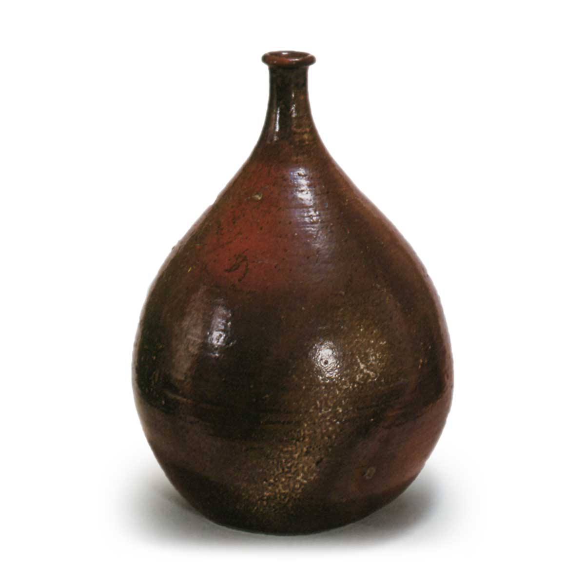 丹波大酒壶 丹波丹波大德利 2025.09.17 丹波大德利 高28.4厘米 口径4.3厘米 胴径26.4厘米 底径16.8厘米兵库县陶艺馆此大酒壶胴体丰盈饱满,颈部纤细,口沿内卷形成玉缘,通体涂覆赤陶泥浆,是丹波地区独具特色的制作手法。器身呈现鲜艳的赤褐与墨色调,局部斜向覆盖着薄层白浊灰釉。底面刻有大型线刻铭文“太右卫门”,并留有四处釉下痕迹。据推测为江户时代初期作品。