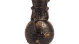 青花兰船纹八角水注 古伊万里青花兰船纹八角水注 2025.09.17 青花兰船纹八角水注 高11.8厘米 口径6.6厘米 宽19.6厘米 底径7.1厘米此水注采用八角形口部与壶身设计,应为特别定制的茶壶。壶身各面绘有俗称“兰船”的风帆船纹样,此类作例极为罕见。盖顶饰有独特的龙纹。高台内刻有“大明成化年制”二行六字款。应为十七世纪末至十八世纪前半叶作品。