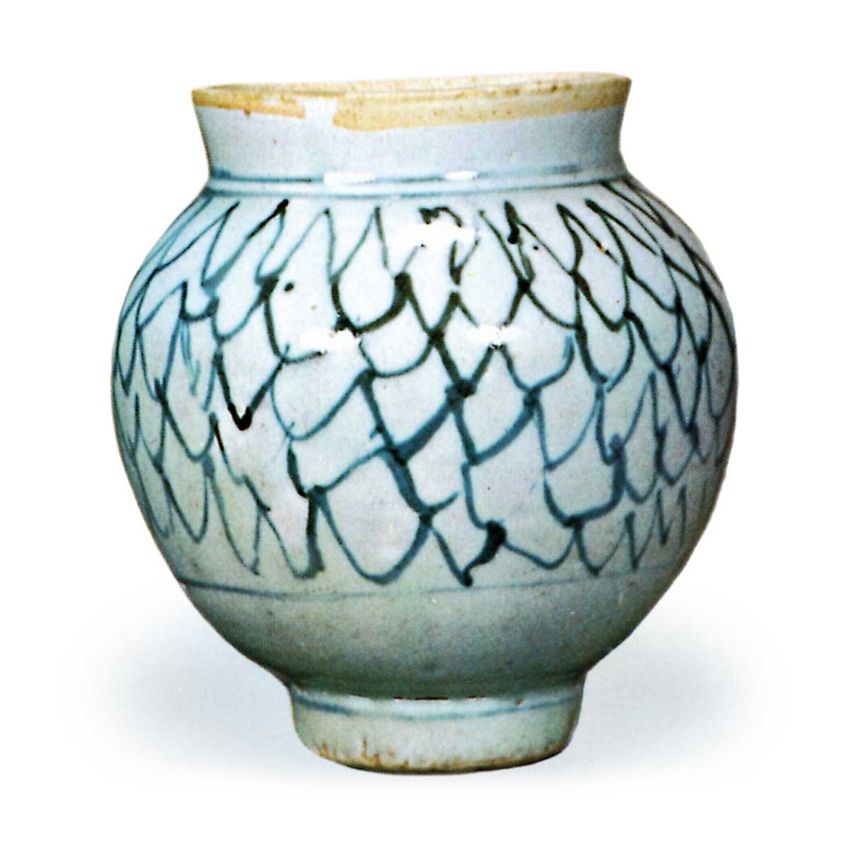 染付网目纹小壶 古伊万里染付网目纹小壶 X Facebook Hatena Bookmark LINE Pinterest 复制 2025.09.17 染付网目纹小壶 高14.5厘米稗古场、百间窑等地均出土过类似器物。器形虽为李朝风格,但器身装饰的纹样明显属于天启年间古染付特有的网目纹。其描绘手法虽奔放不羁,却反而精准捕捉了网目纹的趣味性。堪称初期伊万里染付小壶中最具魅力的杰作之一。
