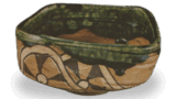 此作以单颗芜菁为构图主体,将其大幅呈现。盘缘饰有唐草纹样,整体呈现青花釉彩鲜明的特质。