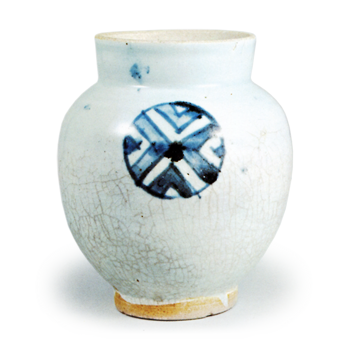 染付牡丹文小壷 古伊万里染付牡丹文小壷 X Facebook Hatena Bookmark LINE Pinterest 复制 2025.09.18 染付牡丹文小壷 高15.9厘米 口径7.5厘米 胴径13.4厘米 底径7.4厘米此为略显小巧的壷器,其肩部外展的器形与十五世纪末至十六世纪期间大量输入我国的明代中期染付瓷器颇为相似。颈部环绕的唐草纹饰亦显中国影响。器身两侧以青花浓彩绘制大型牡丹折枝纹,其间点缀细枝。器身下部的菊花纹样属罕见图案。底部经削制处理。此作在初期伊万里青花瓷中亦属珍稀之作。