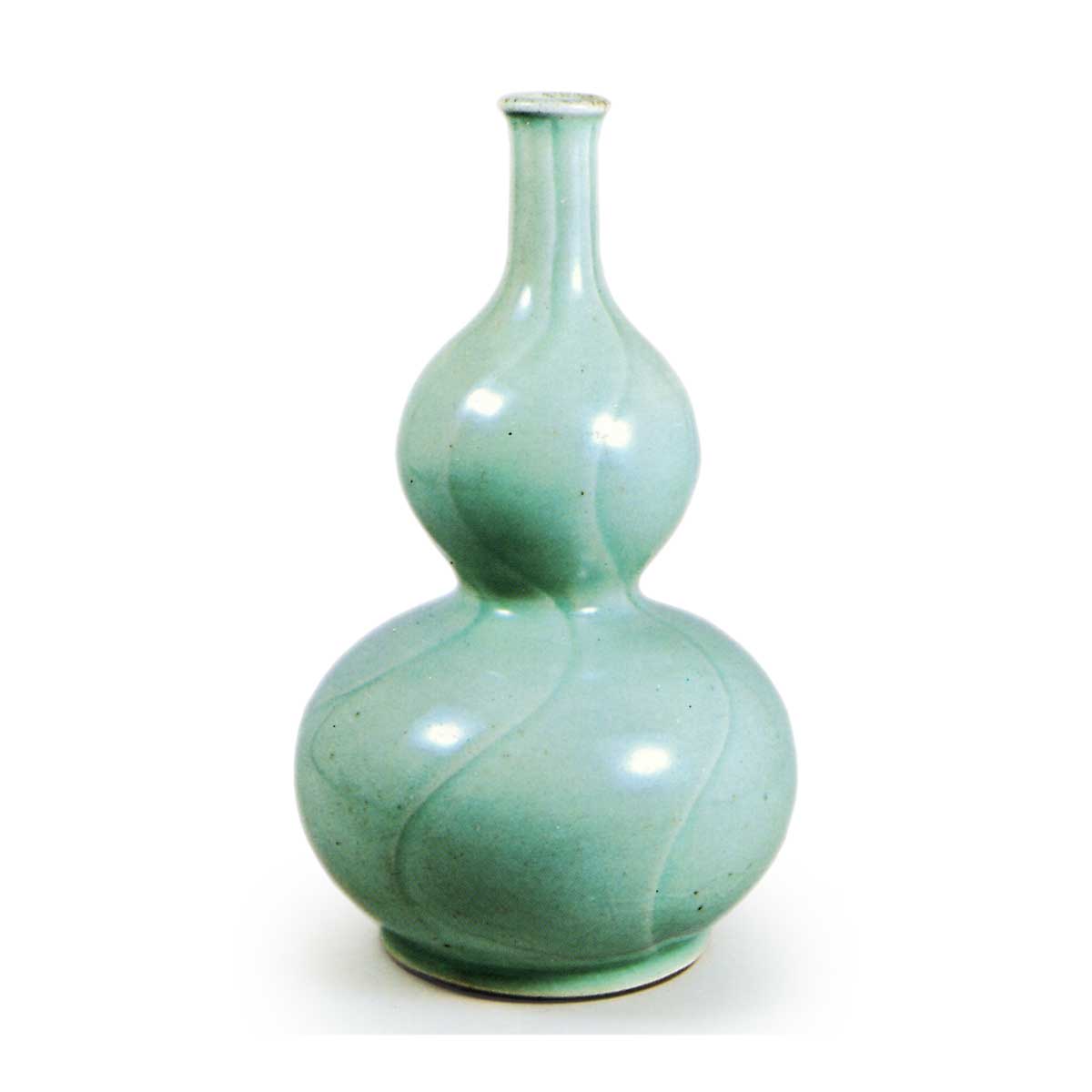 青瓷捻纹瓢形酒壶 古伊万里青瓷捻纹瓢形酒壶 2025.09.18 青瓷捻纹瓢形酒壶 高27.4厘米 口径3.4厘米 胴径16.3厘米 底径10.6厘米此乃伊万里青瓷中最为优雅的典范之作。瓢形器身以六道扭纹浮雕装饰,通体施以青瓷釉。虽推测为宽文年间作品,然作为伊万里青瓷实属完成度极高的杰作。