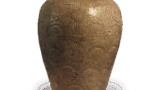 色绘菊花形盆 古伊万里色绘菊花形盆 2025.09.20 色绘菊花形盆 高10.9厘米 口径28.9厘米 底径15.4厘米此盆以二十瓣菊花造型为基底,通体饰以菊花纹样,是件完全体现和风华美的作品。内壁饰以菊花纹样,侧面则呈现白色浮雕菊花纹。每片花瓣内侧均细密描绘着古伊万里瓷器特有的各类底纹。高台边缘以染付技法环绕梳纹,台内留有三处烧制痕迹。此作堪称伊万里瓷器中最为华美的杰作之一。