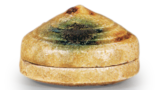 盘面中央大面积装饰三枚饰叶桃果,上方绘有盛放的桃树,此为中国清代五彩与粉彩中典型的吉祥纹样。值得玩味的是,大河内作品中桃果纹样作品众多且皆属精品,或许源于藩主对西王母将桃果奉为仙果典故的偏爱。为凸显红边勾勒的白桃花,器身以染付薄泥料全面涂底,枝叶未施底线而以一笔勾勒。桃果以染泥料隐约勾勒明暗,红线勾边,左右两枚更以无数细密点彩增添红润。据闻此点彩技法尤为艰深。