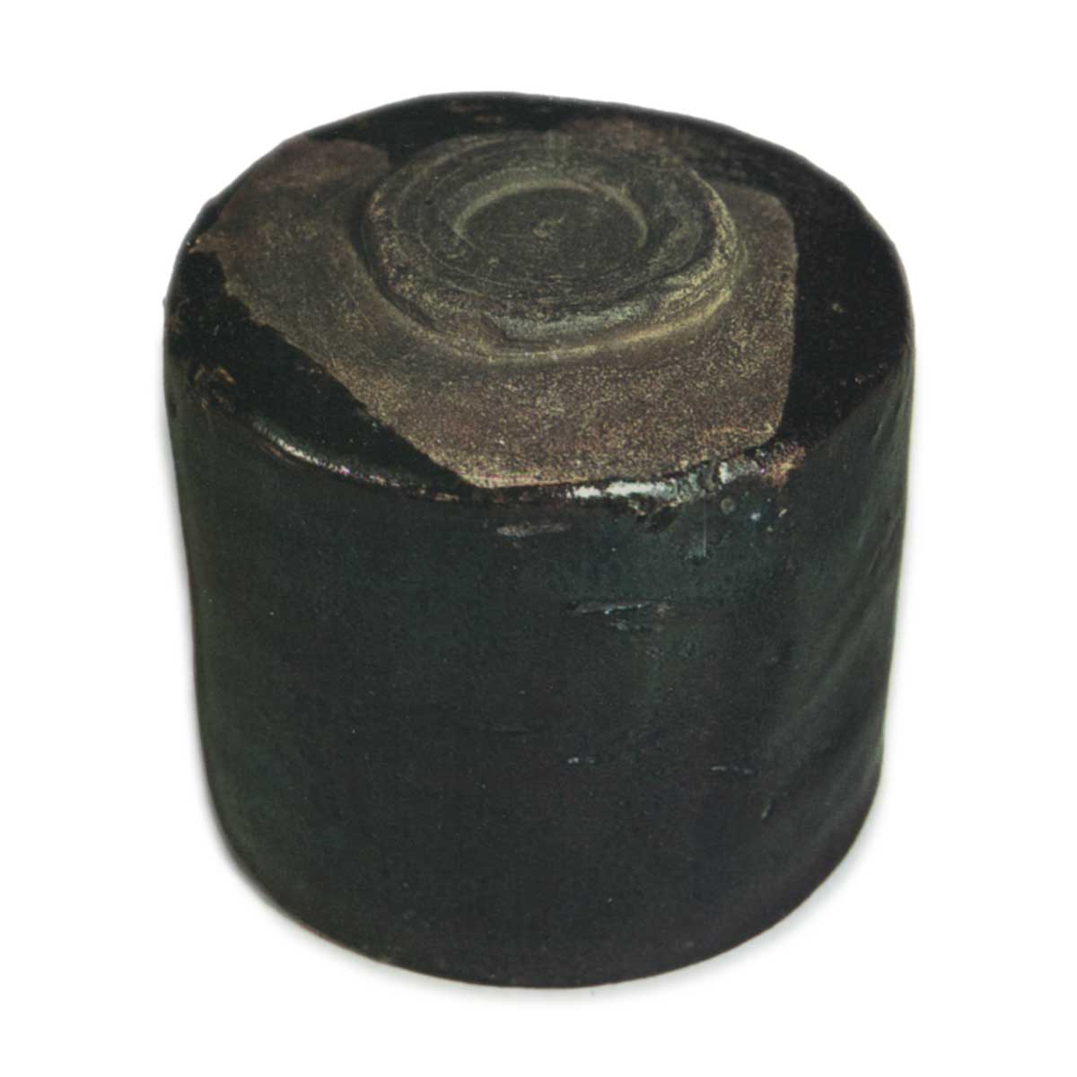 除了足环周围不规则的三角形外露部分,整件作品都覆盖着黑色釉,但不是亮泽的深黑色,手感略硬,光泽类似于宝石甲虫。