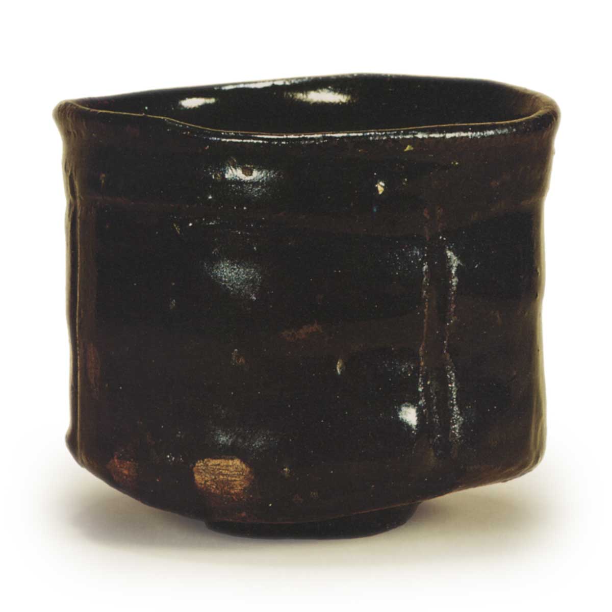 无论是名古屋博商馆的利休濑户“万岁”茶杯,还是这款圆柱形茶杯,利休濑户或濑户利休茶杯的风格似乎都与普通濑户黑茶杯有所不同。