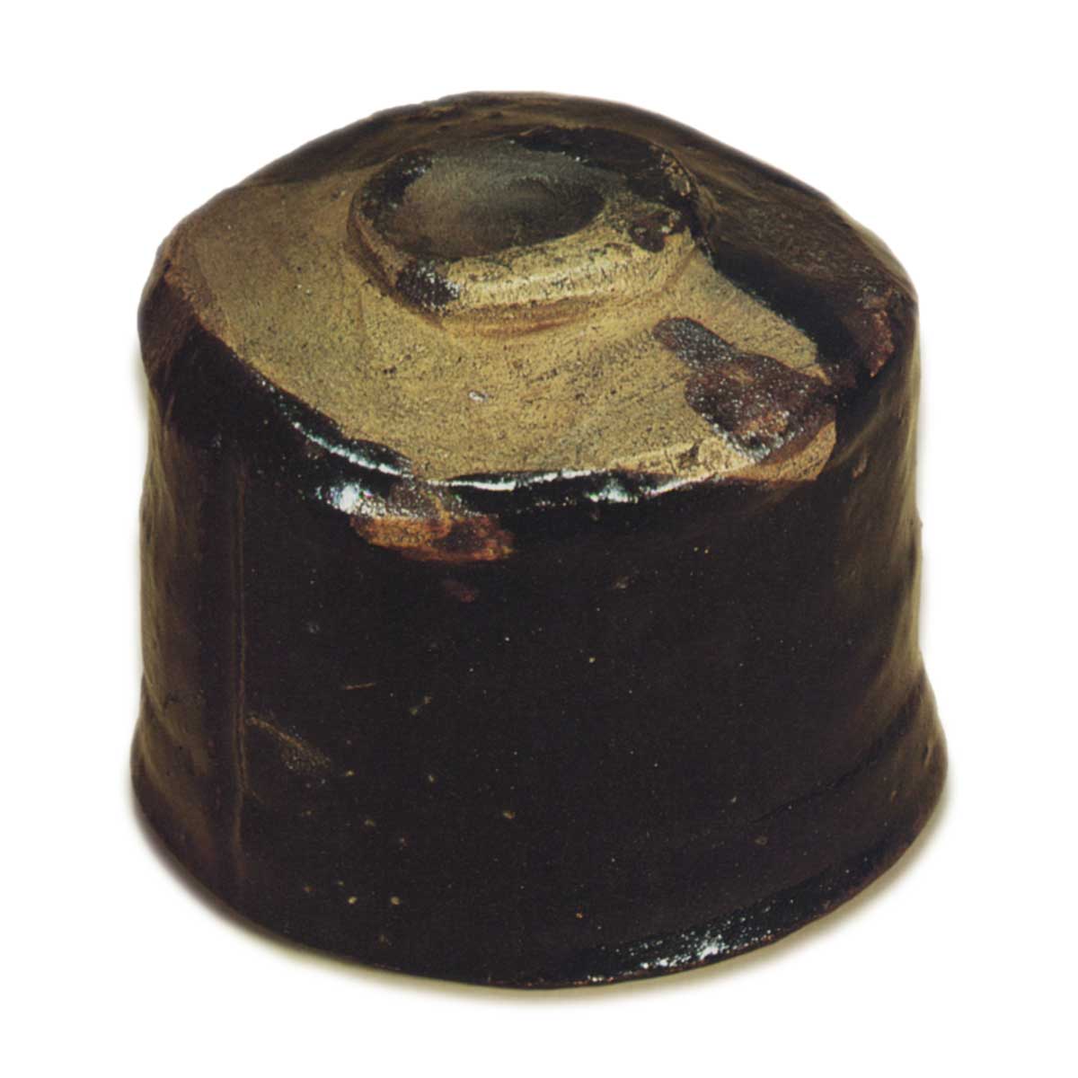 陶器的主体几乎是蛋壳的颜色。 陶土是一种沙质粗粒粘土,内外都涂有厚厚一层黑琥珀色釉,但底部和半圈边缘没有上釉。
