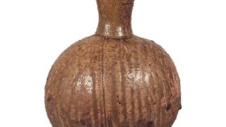 器身有三道粗壮的竖纹,但我在普通的濑户黑中很少见到这样的例子,在口部、器身形状、竖纹以及足环的制作方式上,它与织部有一些相似之处。 与濑户黑一样,它是在烧制后仍然呈鲜红色时从窑中拉出的,从照片中的足环左侧垂直线中间可以看到用钳子从窑中拉出的痕迹。