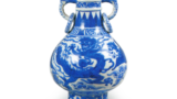 以龙目纹为底,配以白底圆纹,内饰松竹梅纹样,其构图宛如小袖裂纹饰。器形略浅,具古锅岛风格,应为大川内窑作品。底面饰牡丹唐草纹,高台绘有短梳纹。