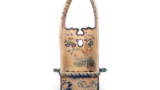 锅岛色绘唐草纹盘 日本锅岛色绘唐草纹盘 2025.10.06 锅岛色绘唐草纹盘 高4.4厘米 口径15.3厘米 底径7.9厘米此为五寸盘,盘缘饰铙形边,盘面上下鲜明呈现大朵牡丹纹。盘底饰七宝结纹,栉纹高台。