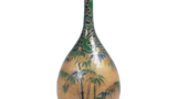 锅岛青花木犀纹盘 日本锅岛青花木犀纹盘 2025.10.06 锅岛青花木犀纹盘 高4.3厘米 口径14.7厘米 底径7.8厘米盘面以青花技法描绘朦胧雾霭中的木犀古树,图案占据整个盘面。青花釉色略带晕染,同款纹样亦见于彩绘七寸盘。盘底饰七宝结纹,底足梳纹较长。